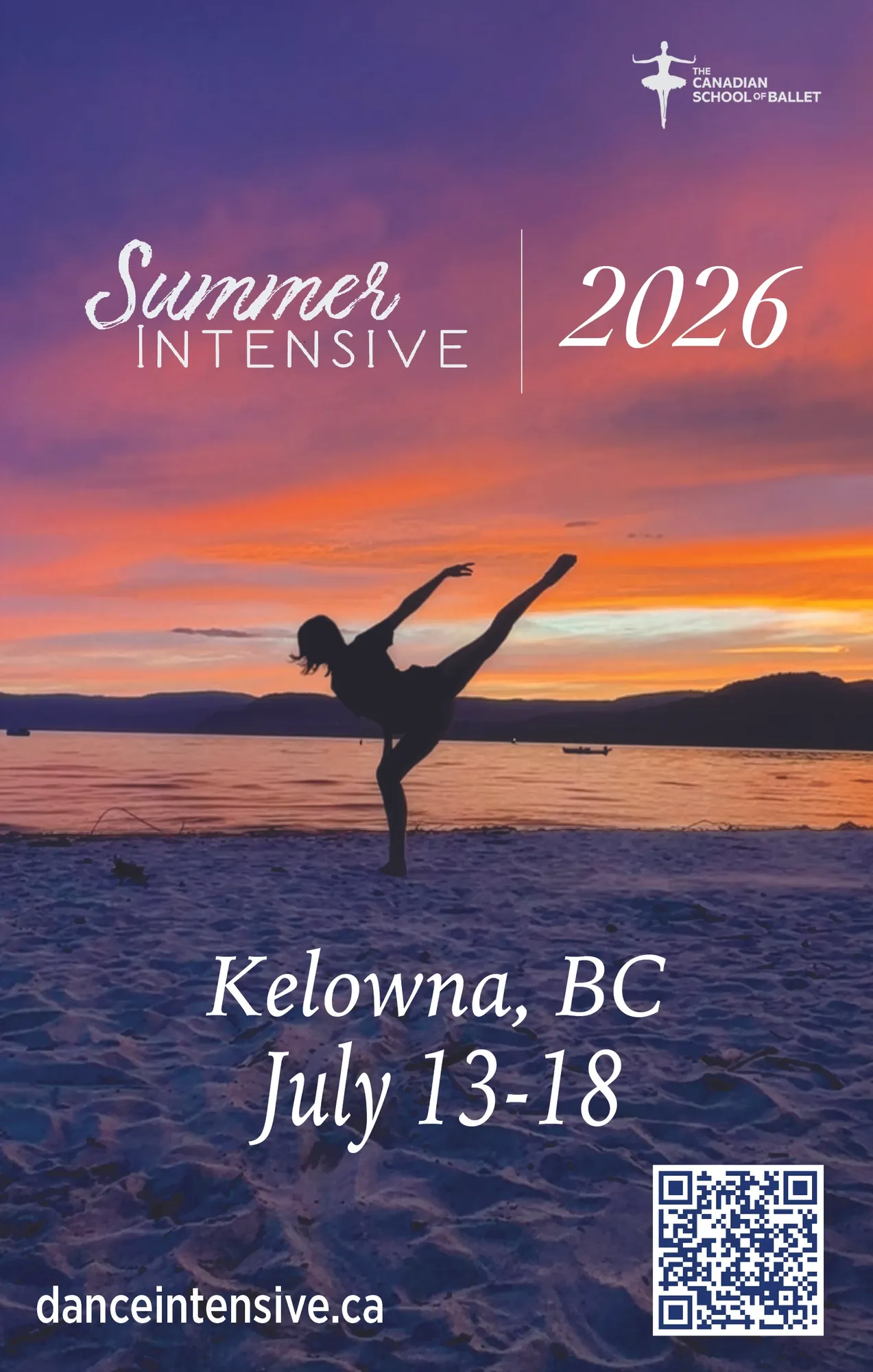 Our Summer Intensive is July 13-18, 2026 at The Canadian School of Ballet. July 18th will be the Showcase and Awards at UBCO Ballroom
